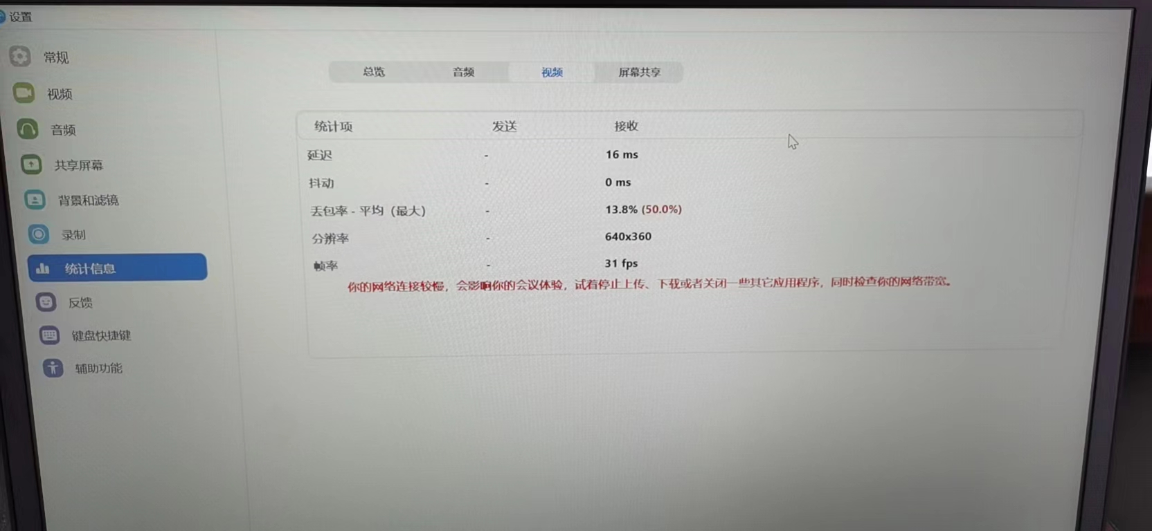 使用联通专线,下载和上传测速均200M,正常办公,但使用视频会议时视频丢包严重,(采用腾讯会议,钉钉会议,好信云及云视讯测试),无论直连或经交换机S5120均出现。请问如何排查?