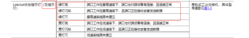 它是双指示灯,绿灯表示在最高速率下,1000M,导轨式交换机是这样的
