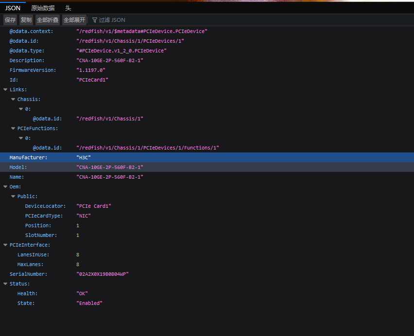 调用redfish的API后可以查询并获取到设备厂商的信息,但芯片厂商并没有找到。