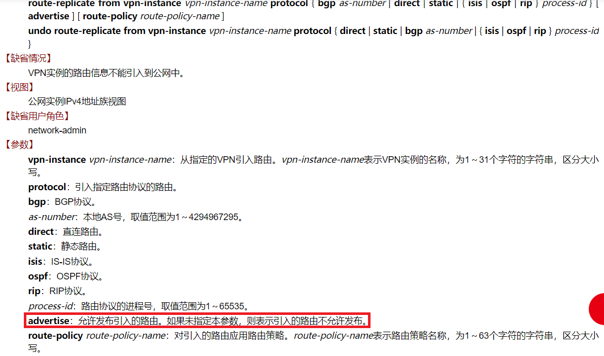 3. R2上配置路由注入,将vpn实例中的路由,注入到全局路由表,如下命令: