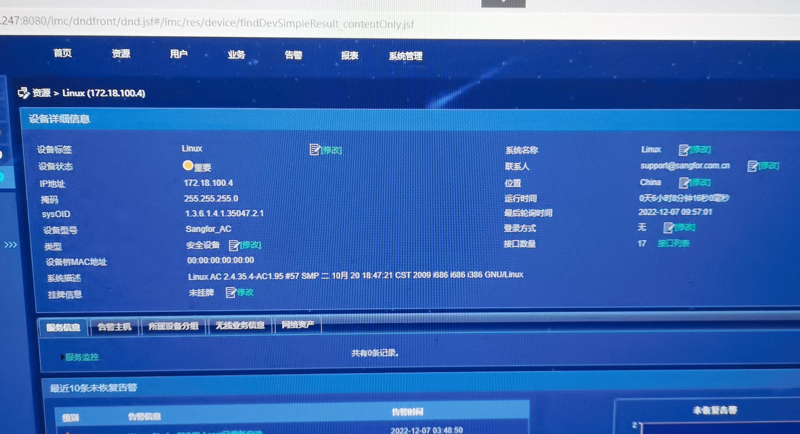 imc平台(E0706P12版本)对深信服的上网行为管理识别不出来,是什么导致的?