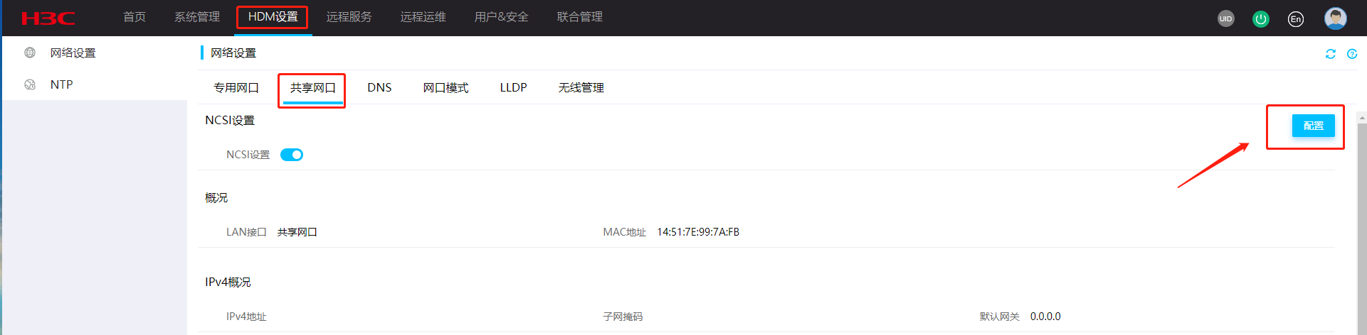 什么版本的HDM,B05特殊一些,需要关闭NCSI,B05之前的版本可以在HDM网络配置里关闭共享.
