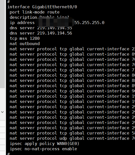 (5) 关闭接口上的NAT静态地址转换功能。