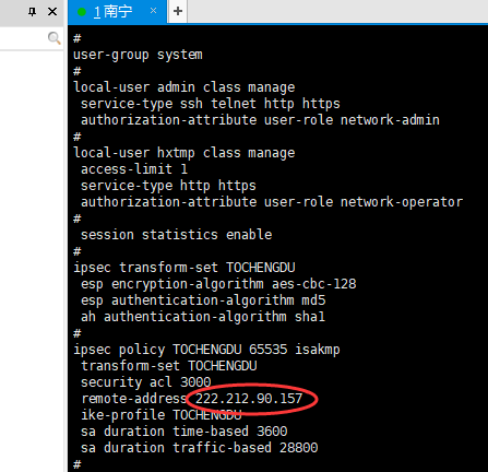 >视图,sys切换到#视图,然后敲ipsec policy TOCHENGDU 65535 isakmp