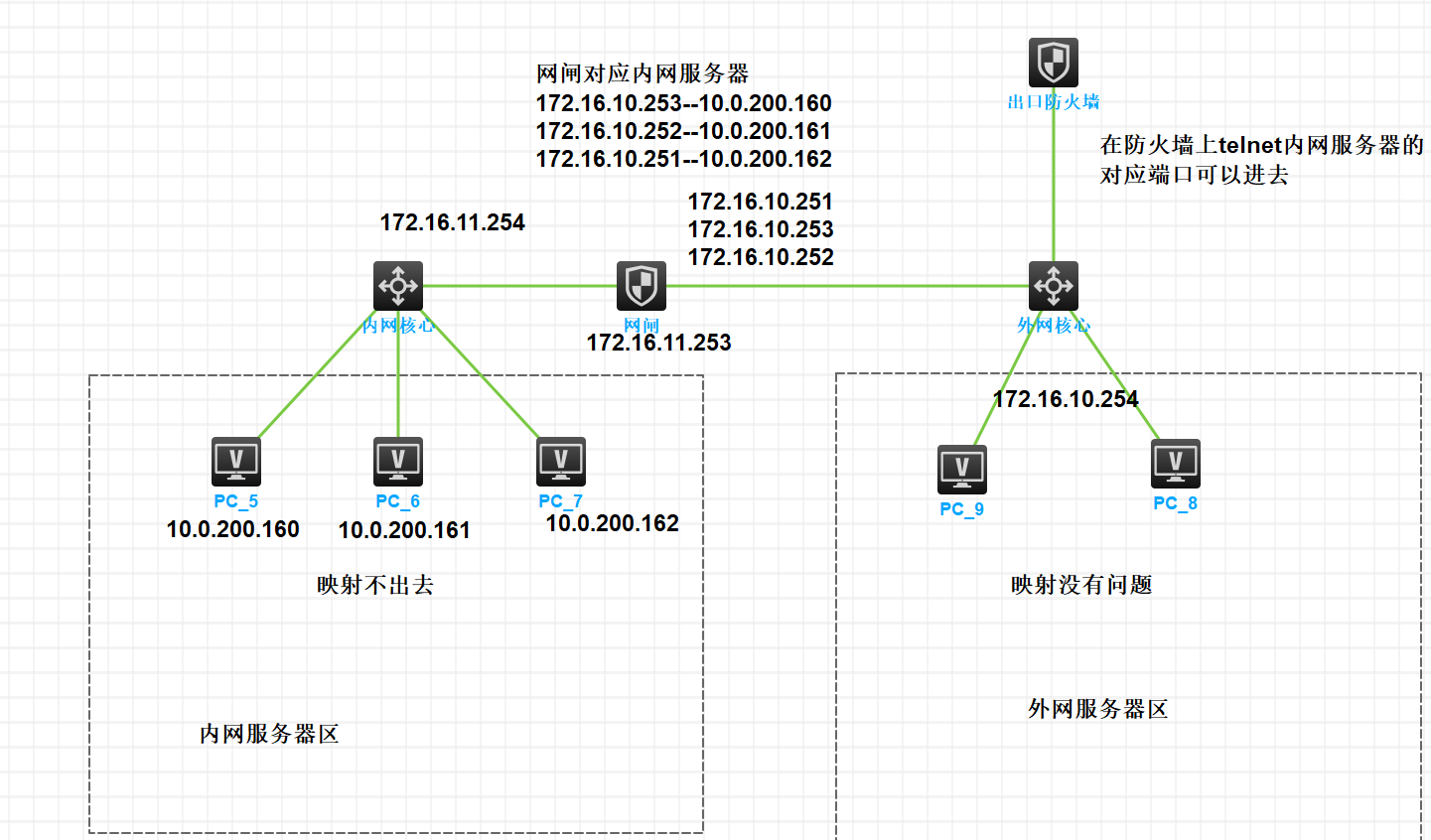 防火墙映射的外网交换机上的服务器,公网可以正常访问,内网交换机上的服务器,公网telnet端口进不去,网闸是第三方设备,这种情况该怎么弄啊