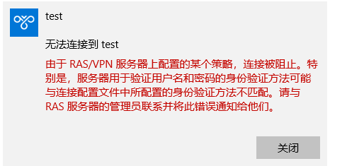 电脑连接VPN提示如下: