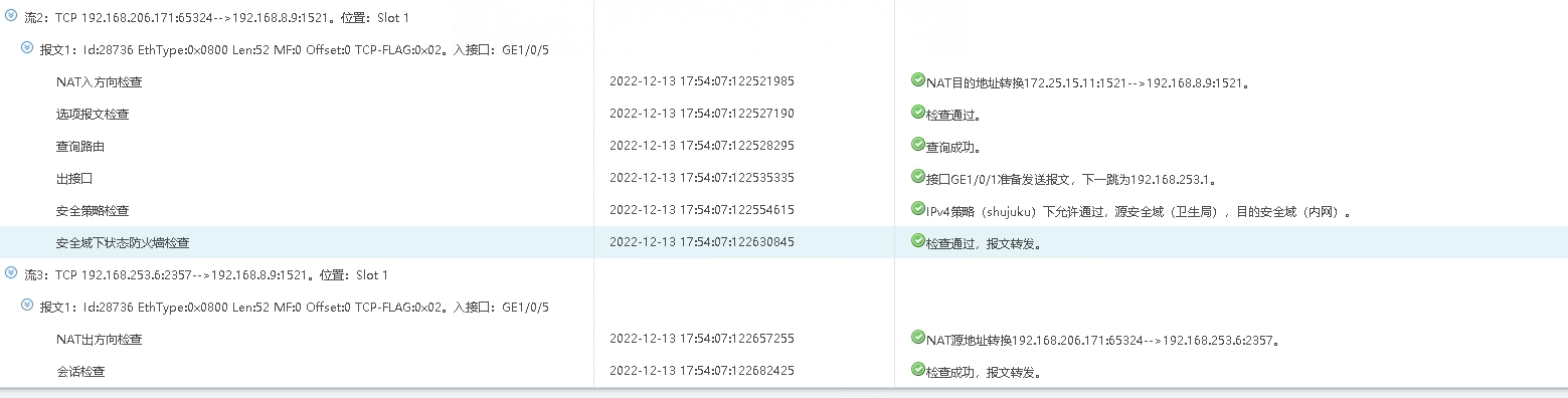 从防火墙上报文示踪显示数据已经从防火墙转发了 现在不清楚为什么还会出现这种情况