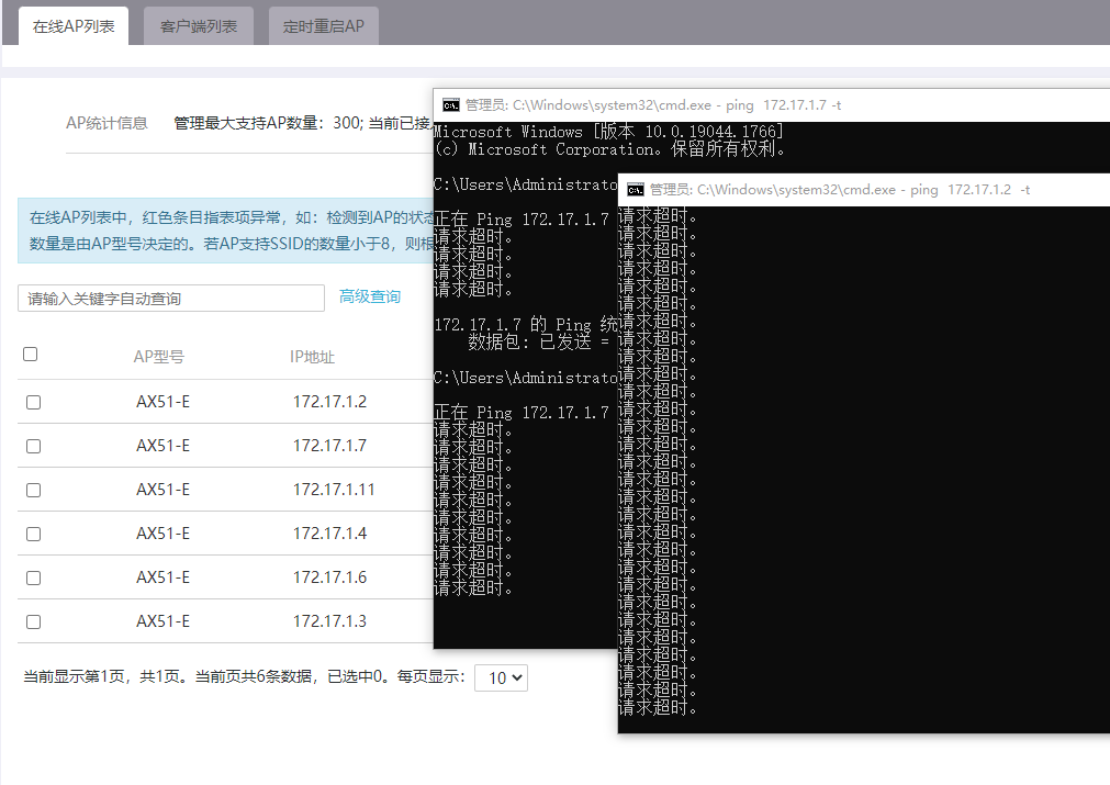 已经更新到了最新的版本,还是会出现偶尔ping不通AP的情况,路由器能Ping通AP,电脑能通AC的默认地址172.17.1.1 ,但就是ping不通AP的