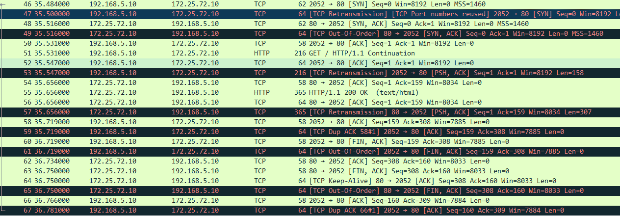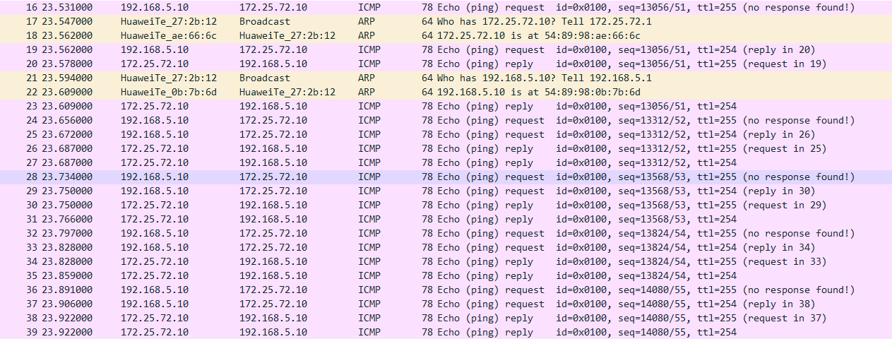192.168.5.10的终端访问服务器172.25.72.10时,在LSW1的G0/0/1口抓包,发现ICMP和TCP均存在报错的情况。而172.25.73.10的终端访问时,未出现报错。是否是交换机上存在类似RIP毒杀路由的机制?或者存在其他原因导致报错?