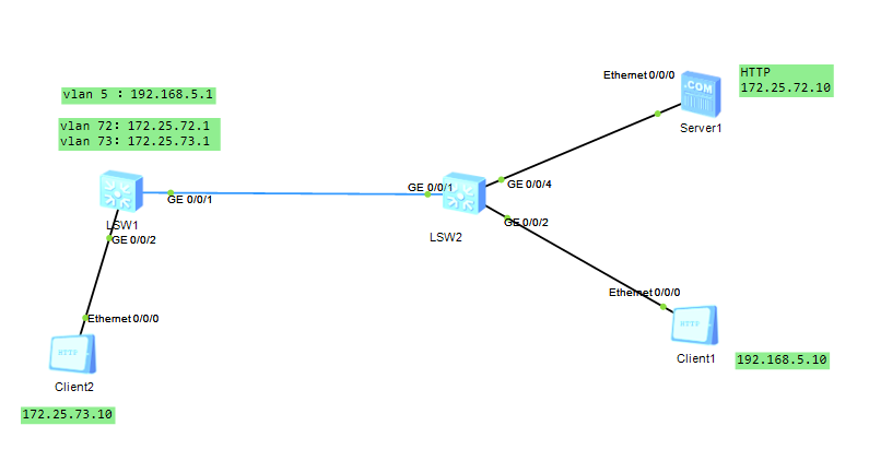 现场环境设备为H3C S5700。使用华为ENSP进行模拟。设备配置如下: