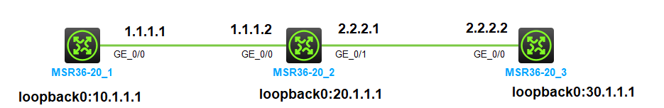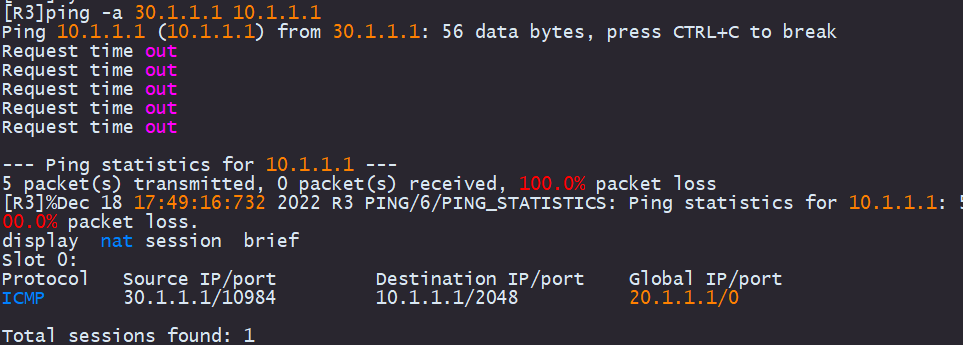 R3出口通过nat转了R2的loop地址20.1.1.1,R2到R1也配置了去往10.1.1.1的路由(这里R1和R2模拟运营商网络)