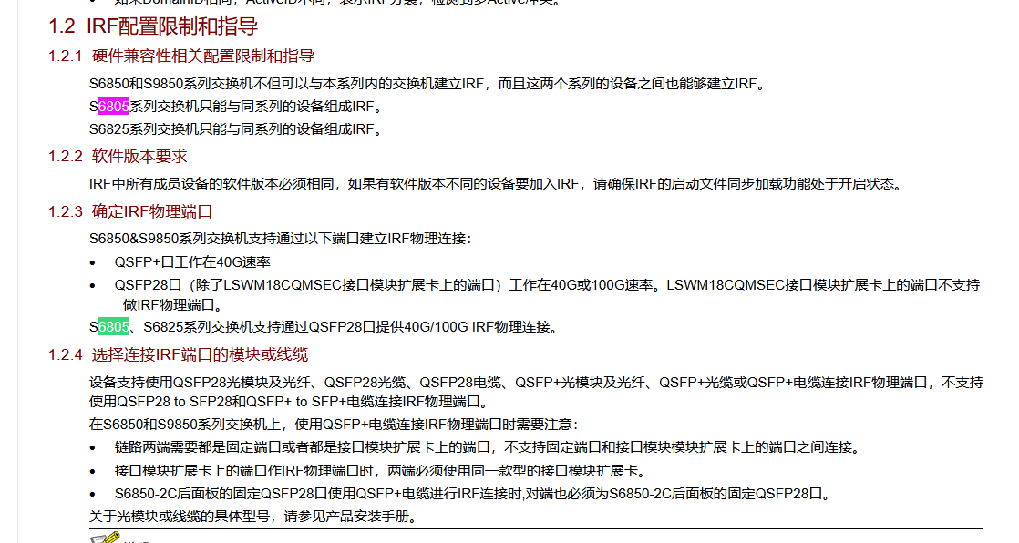 S6805、S6825系列交换机支持通过QSFP28口提供40G/100G IRF物理连接。