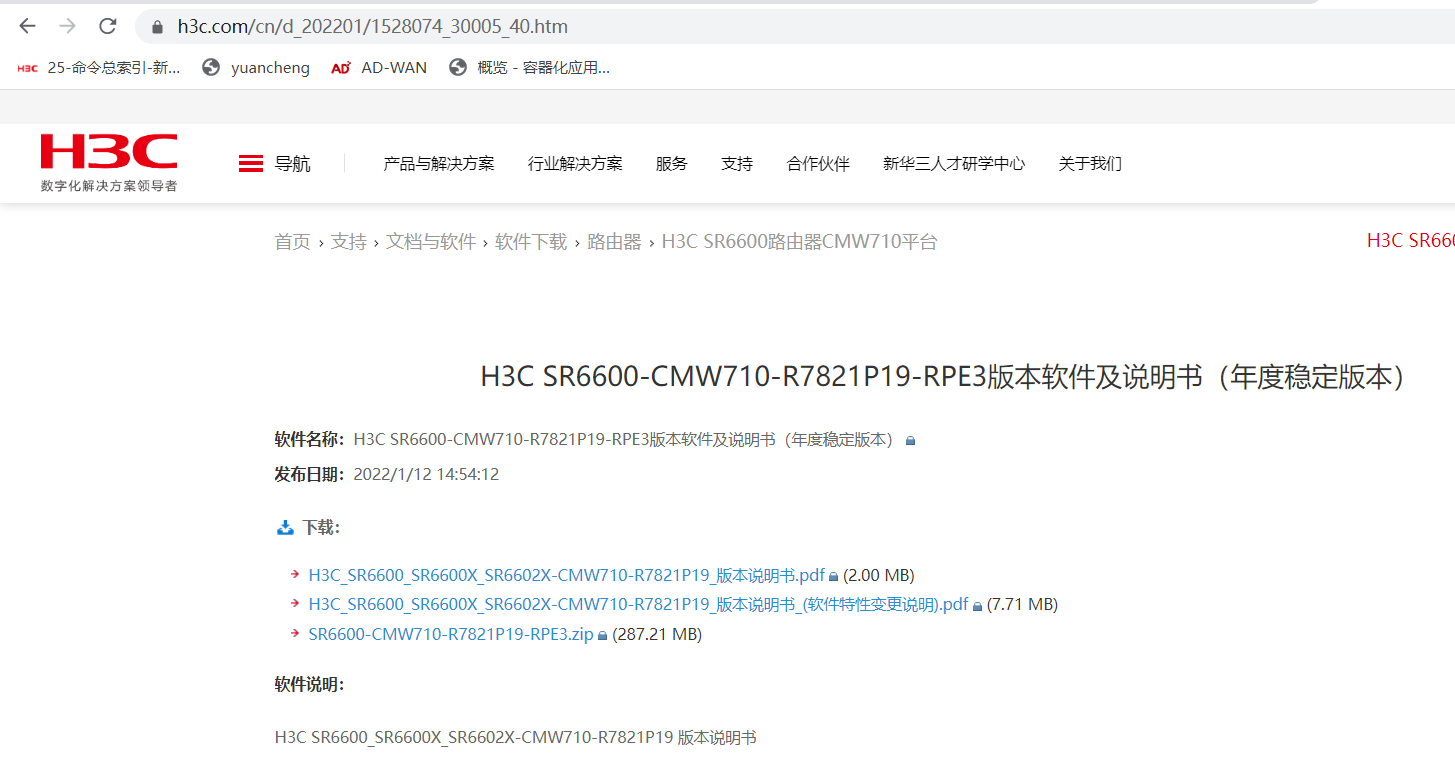 目前最新的版本是H3C SR6600-CMW710-R7821P19-RPE3