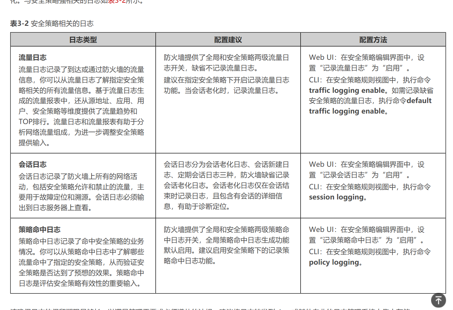 开启对符合过滤条件的报文记录日志信息的功能 | logging enable | 缺省情况下,对符合过滤条件的报文记录日志信息的功能处于关闭状态 |