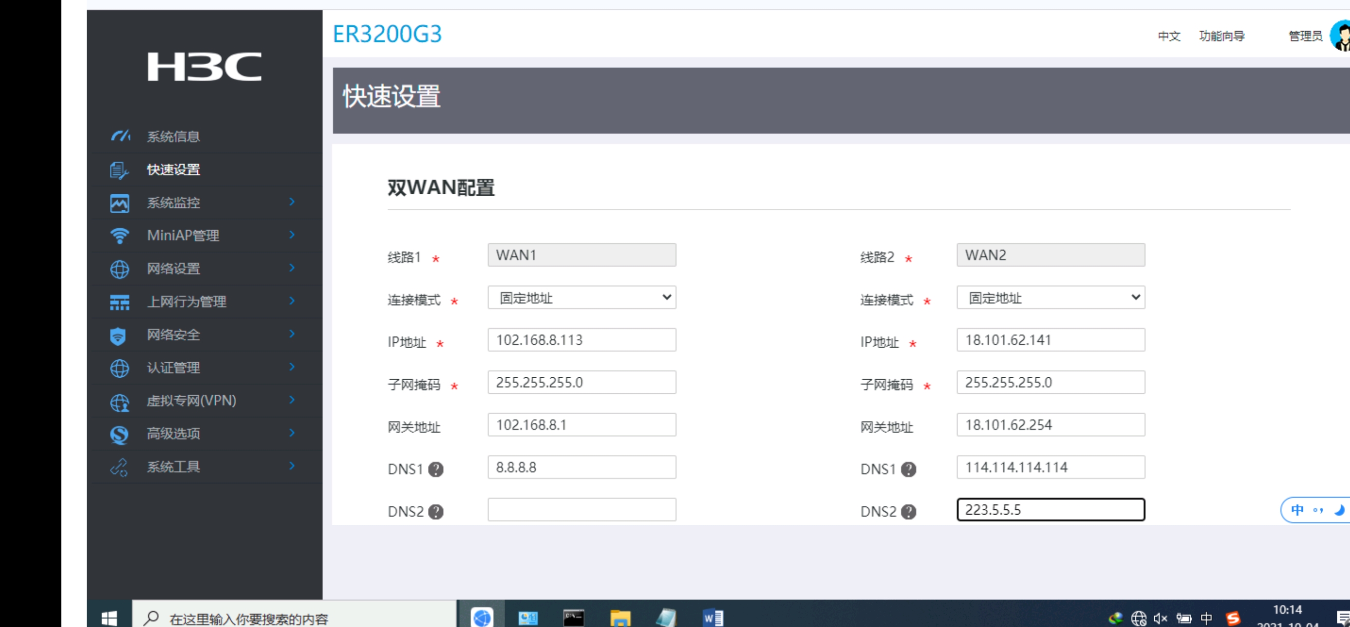 ER3200G3 LAN口映射WAN 映射的WAN口 DNS 不建议关掉,关闭后影响DNS地址解析。