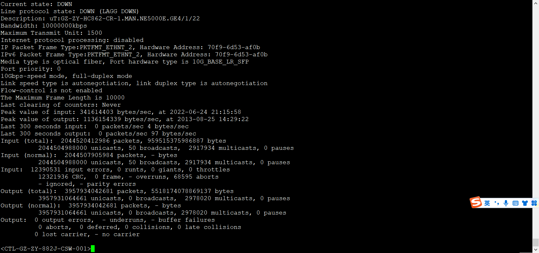 DOWN (LAGG DOWN):表示聚合接口中没有选中的成员端口