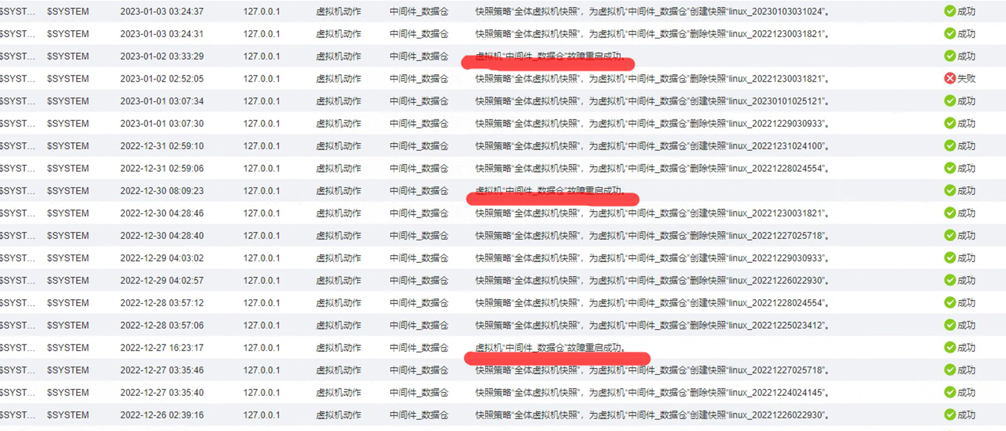 在管理平台收集,看下日志,可以看到虚拟机重启原因。