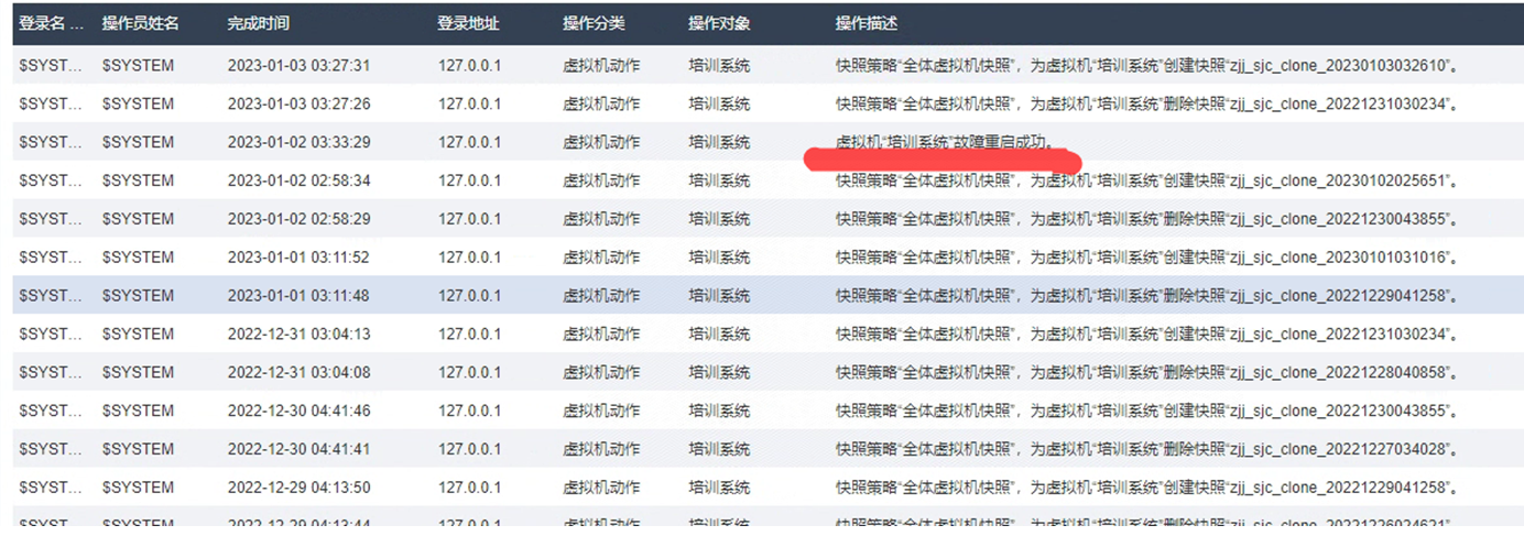 或者说登陆后台,用命令查看该虚拟机的日志,就可以分析出来是由于什么原因导致虚拟机重启的。