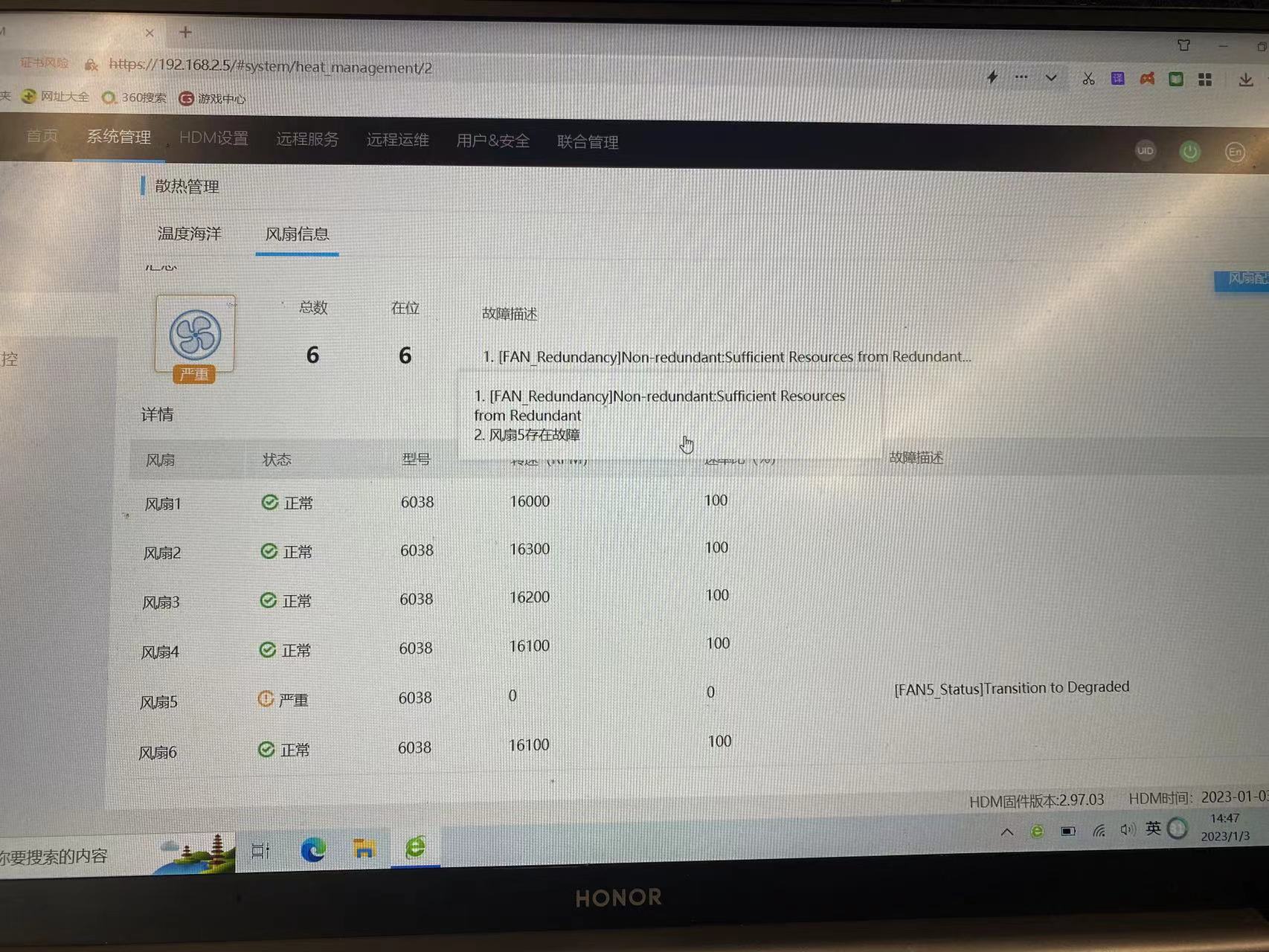 服务器登陆HDM风扇无法调试,页面有反应,风扇无反应