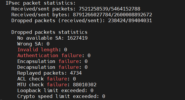 Dropped packets 和 MTU check failure 两个数据较高,什么原因导致的?或者有什么排查思路? 路由器的cpu内存使用率都正常