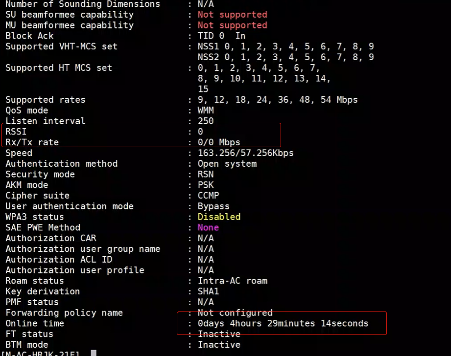无线AC上使用命令查看客户端 display wlan client mac-address 8ec2-a33f-fc36 verbose