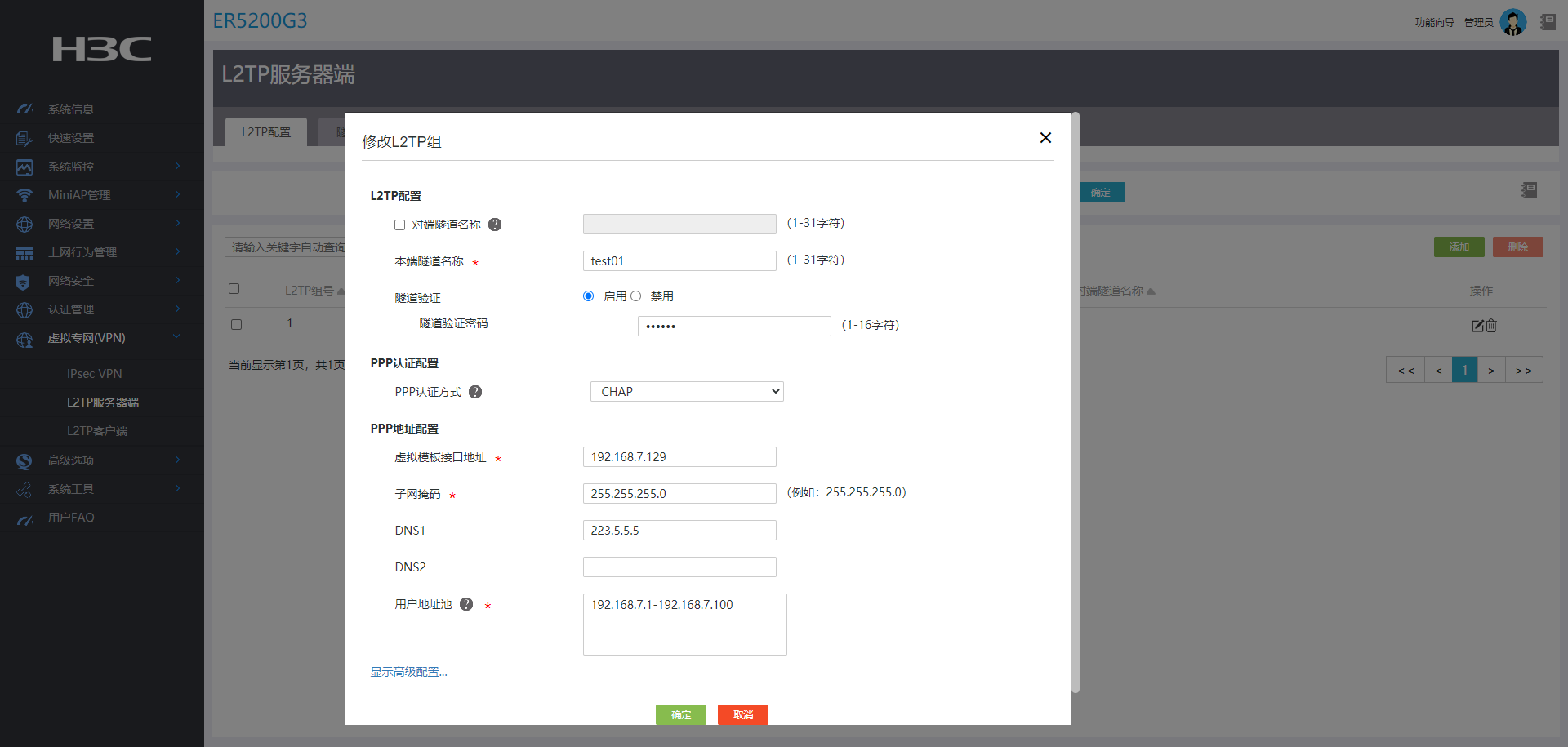 在ER5200上看,L2tp用户test01是可用状态啊。