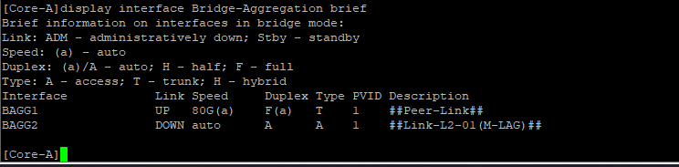 [Core-A-Bridge-Aggregation1]port m-lag peer-link 1