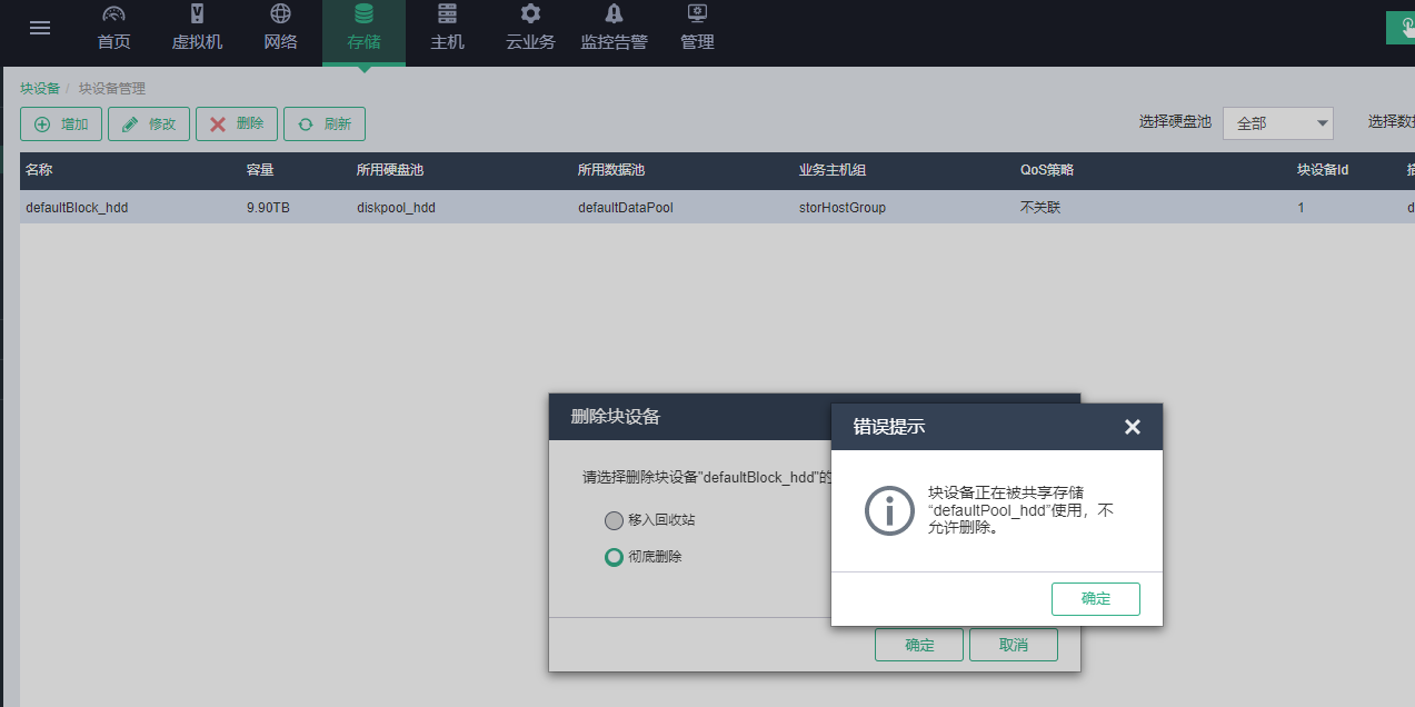直接删数据池,报存在块设备: