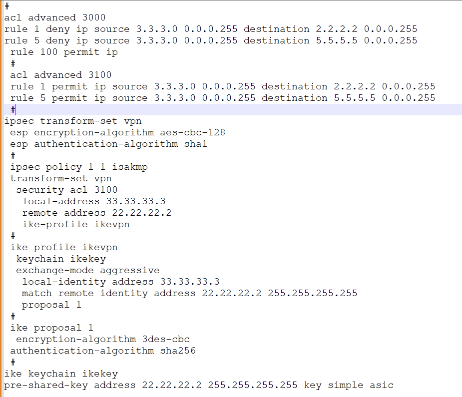 防火墙配置好了安全策略,路由也设置好,两端的IP能互相ping通。配置了IPSec vpn,但是查看dis ike sa却没起来,请教下各位大佬,是哪里配置错了呢?