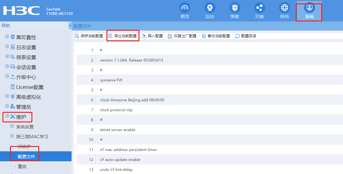 H3C SecPath F5000 web界面怎么导出策略
