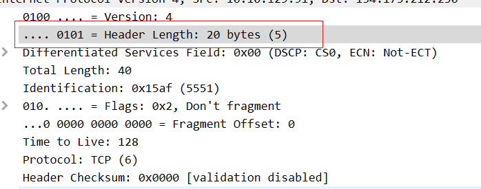 不是这个我知道IP头部的长度下面那个40 不知道什么意思
