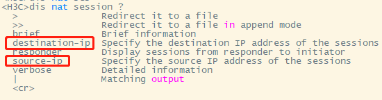 source-ip source-ip:显示指定源地址的会话。source-ip表示源地址,该地址必须是创建会话的报文的源地址。