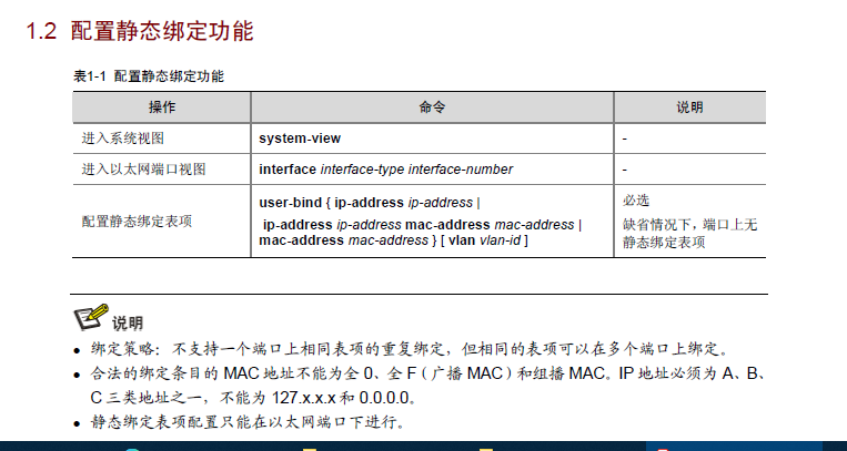 ip source binding ip-address 1.1.1.1 mac-address 0023-24a1-0605