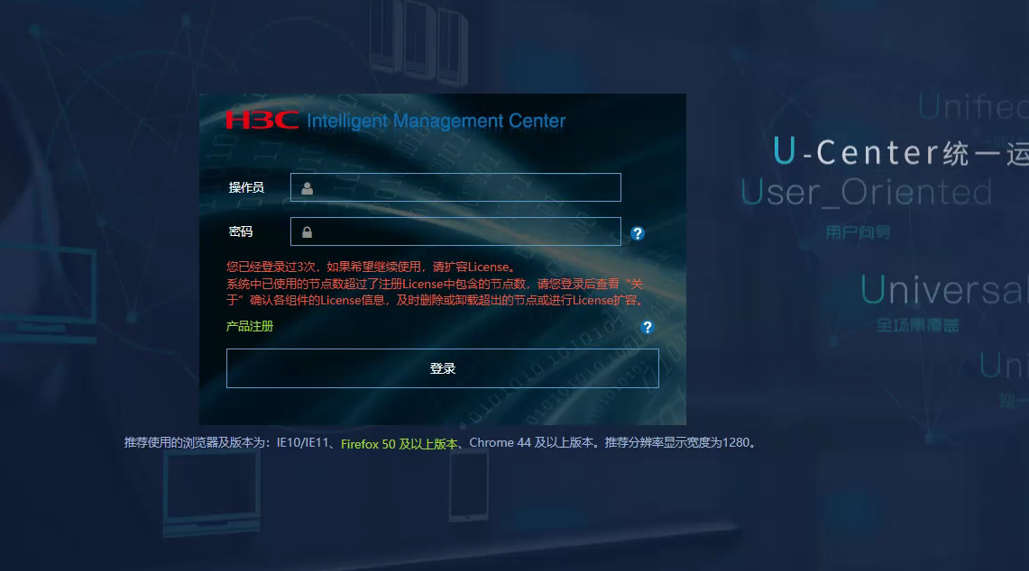 默认有临时授权,添加了一个交换机,忘记了没删除,现在临时授权过期,我正式授权里面没有节点数(做EAD准入),有登录了3次,有什么办法登录IMC吗?我要把这个管理的交换机删掉,