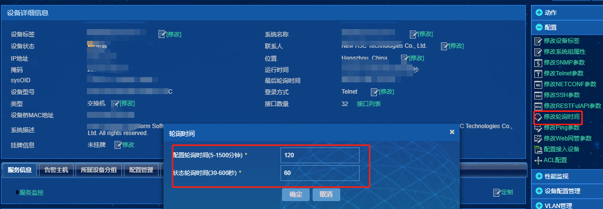 除了正常轮询时间间隔,和监控不可达的告警设置。。。IMC通过设备离线后马上就能知道,那正常管控期间ping包频率是多少?哪里能看到吗?