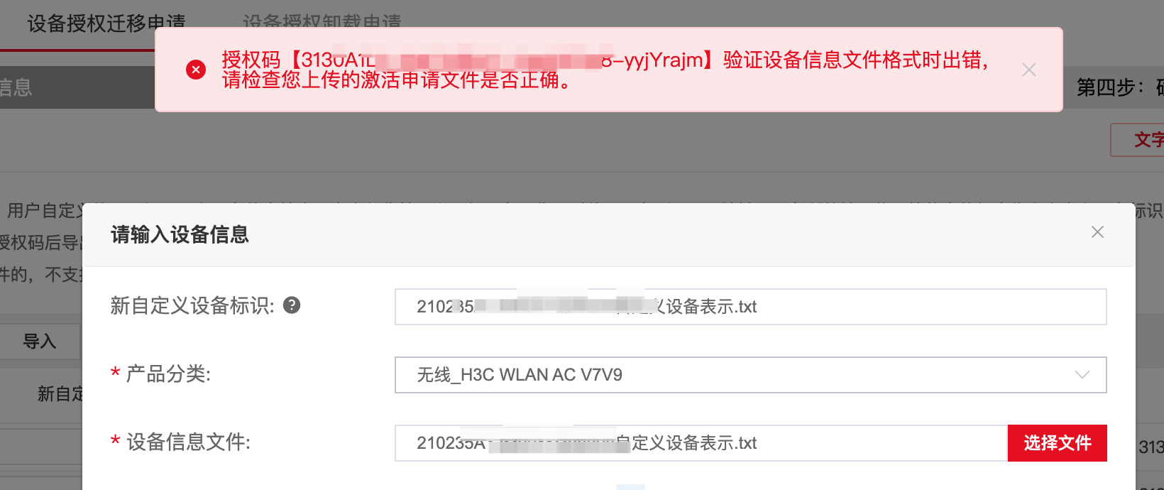 wx2540H授权迁移申请,绑定硬件设备,自定义设备标识,设备信息文件格式是怎样的?总是提示格式不对