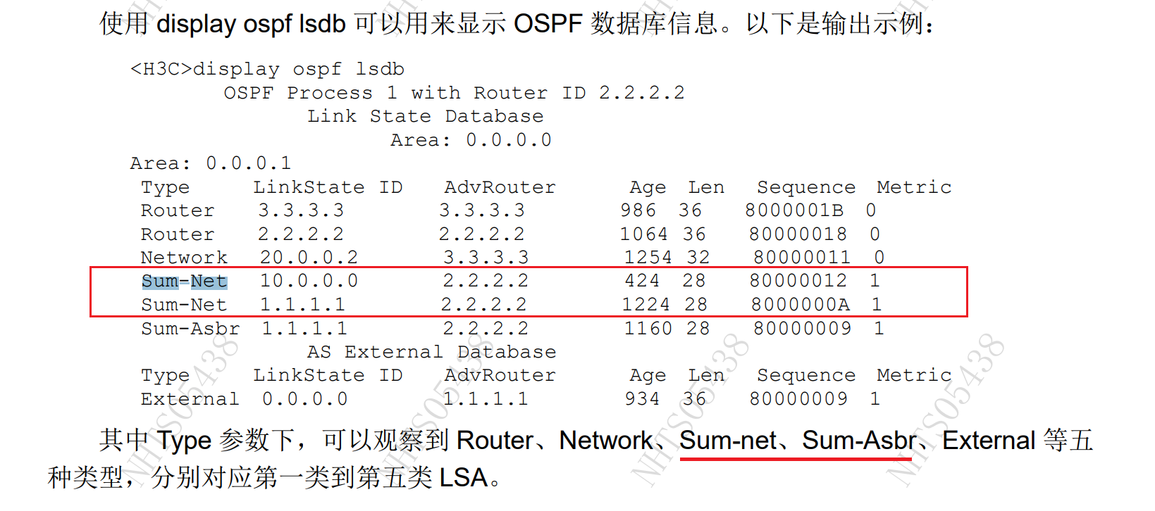 查看ospf lsdb命令下面这两个是什么意思???求解 胶片没有没有注释这两个,其余的都有