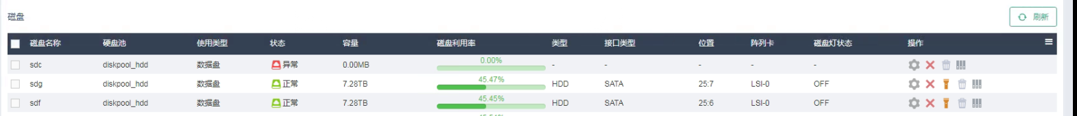 其中一个节点数据盘硬件故障,容量都不识别了