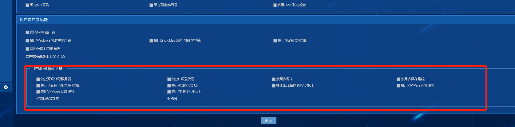 IMC eia结合无线portal认证,请问这里的选项能够实现限制终端认证后再开热点使用?比如禁止多网卡禁止多操作系统这些