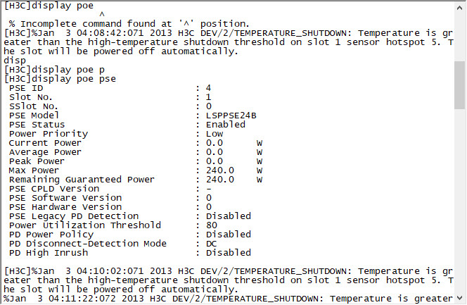 突然交换机所有接口都不供电了,接了12个华三小贝的ap,进入接口模式使用开启poe命令也打不开。环境温度10度。请问各位老师是硬件坏了么?有什么办法修复啊。