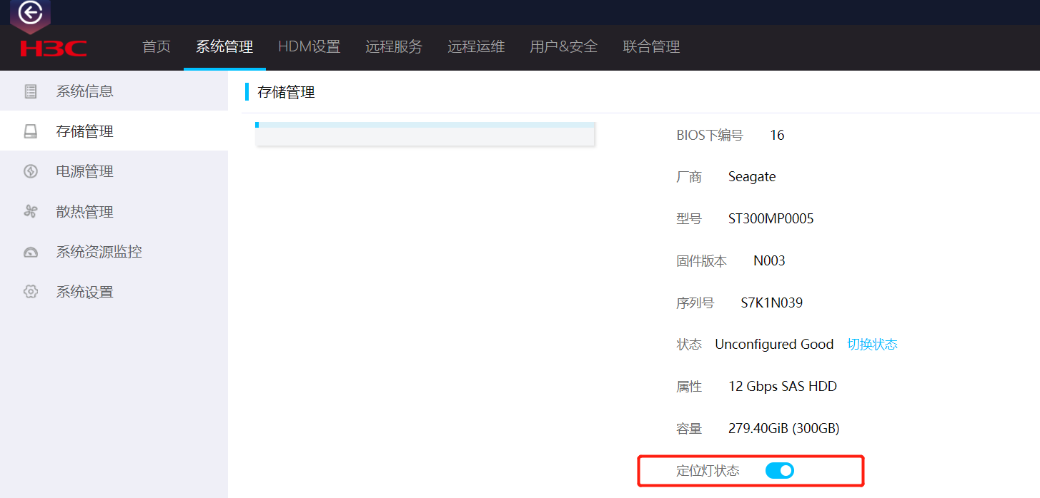 进入到HDM,系统管理--存储管理--物理视图把定位指示灯关闭