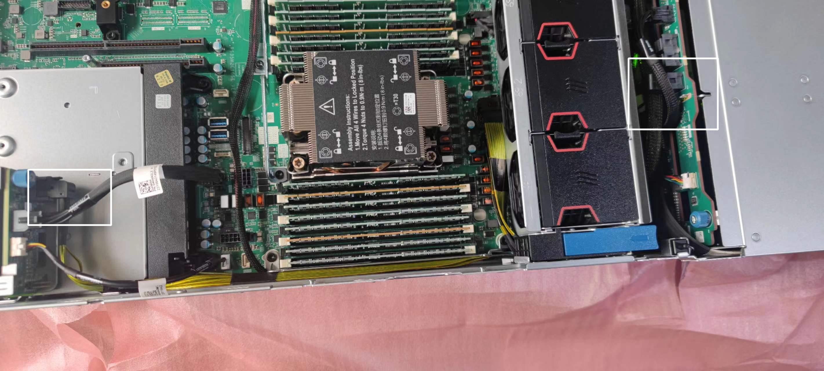 后部硬盘用萨斯线接的前置硬盘笼 前置硬盘链接的p460raid