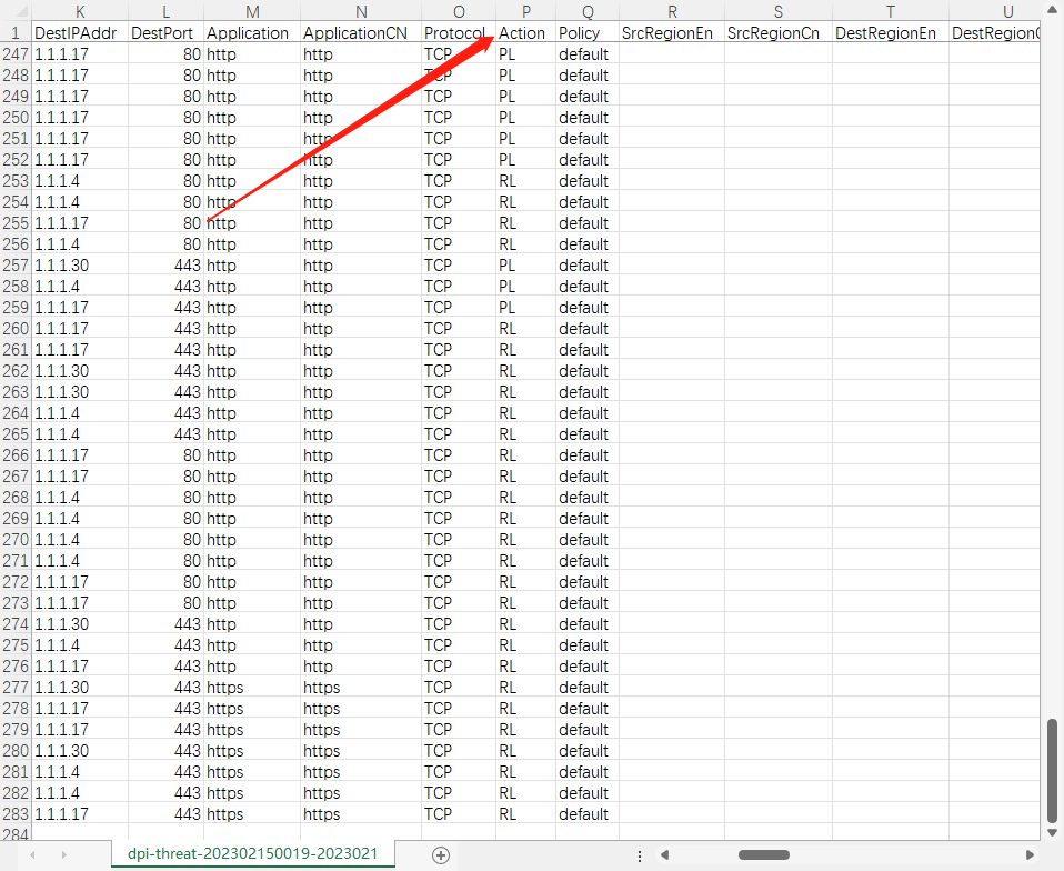 入侵防御日志下载,action值中,PL、RL表示什么,除了这两个以外还有其他的值吗