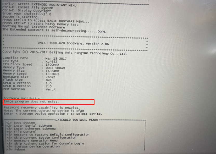 防火墙掉电后重启无法进入系统界面,提示