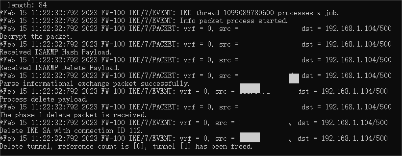 debug ike all 没发现错误信息,但最后会删除通道