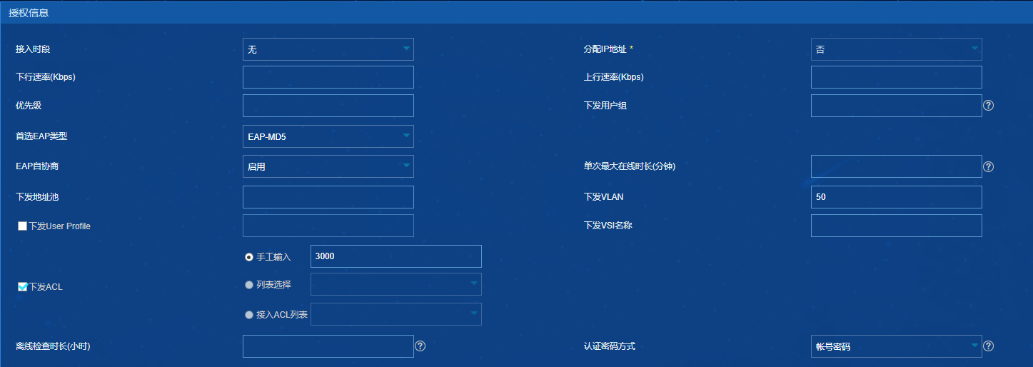 S5130交换机做802.1x做准入认证,EIA向交换机下发ACL3000,在交换机上查看connection没有下发授权ACL