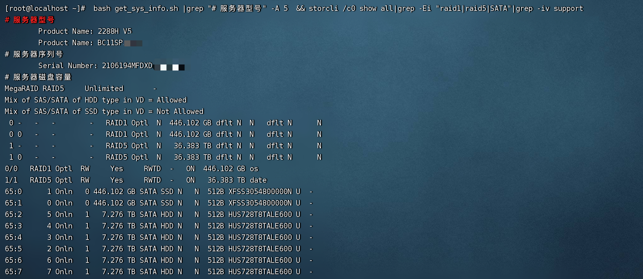 megecli、strocli该工具在联想、超聚合的服务器操作系统中正常获取到raid状态。状态如下图所示