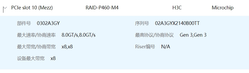目前只有配置12Gb 2端口SAS RAID卡(带4GB缓存,支持8个SAS口,不含超级电容)(FIO);正在让现场工程师登录带外看下
