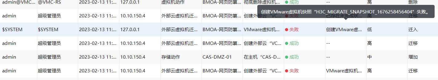 cas外部云迁移开机迁移vmware虚拟机提示创建快照失败,vmware tools是正常运行,也尝试过重装vmware tools,离线迁移就没有这个问题,可以成功迁移;