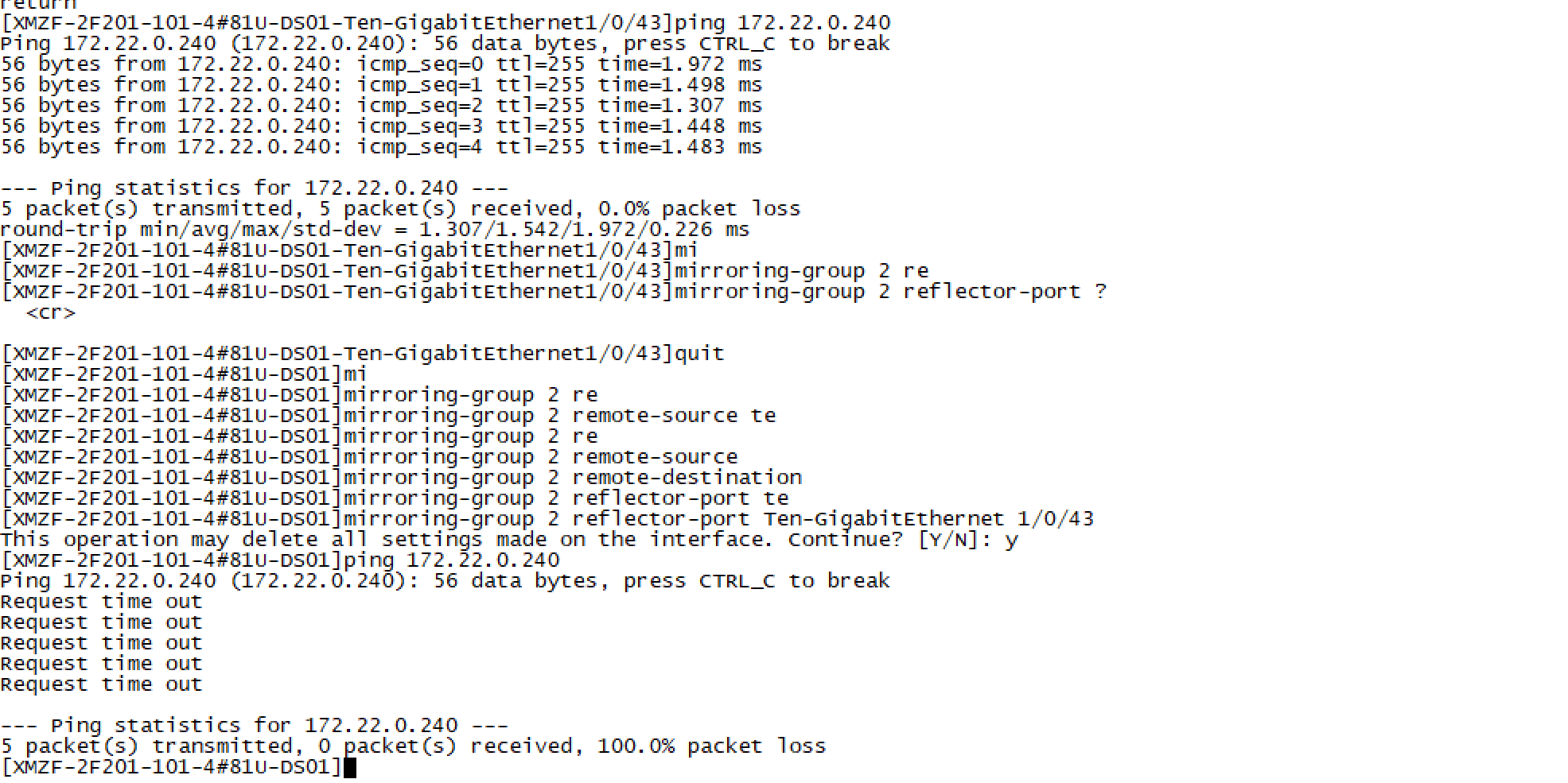 你的反射端口是不是空的口,需要找一个不用的口